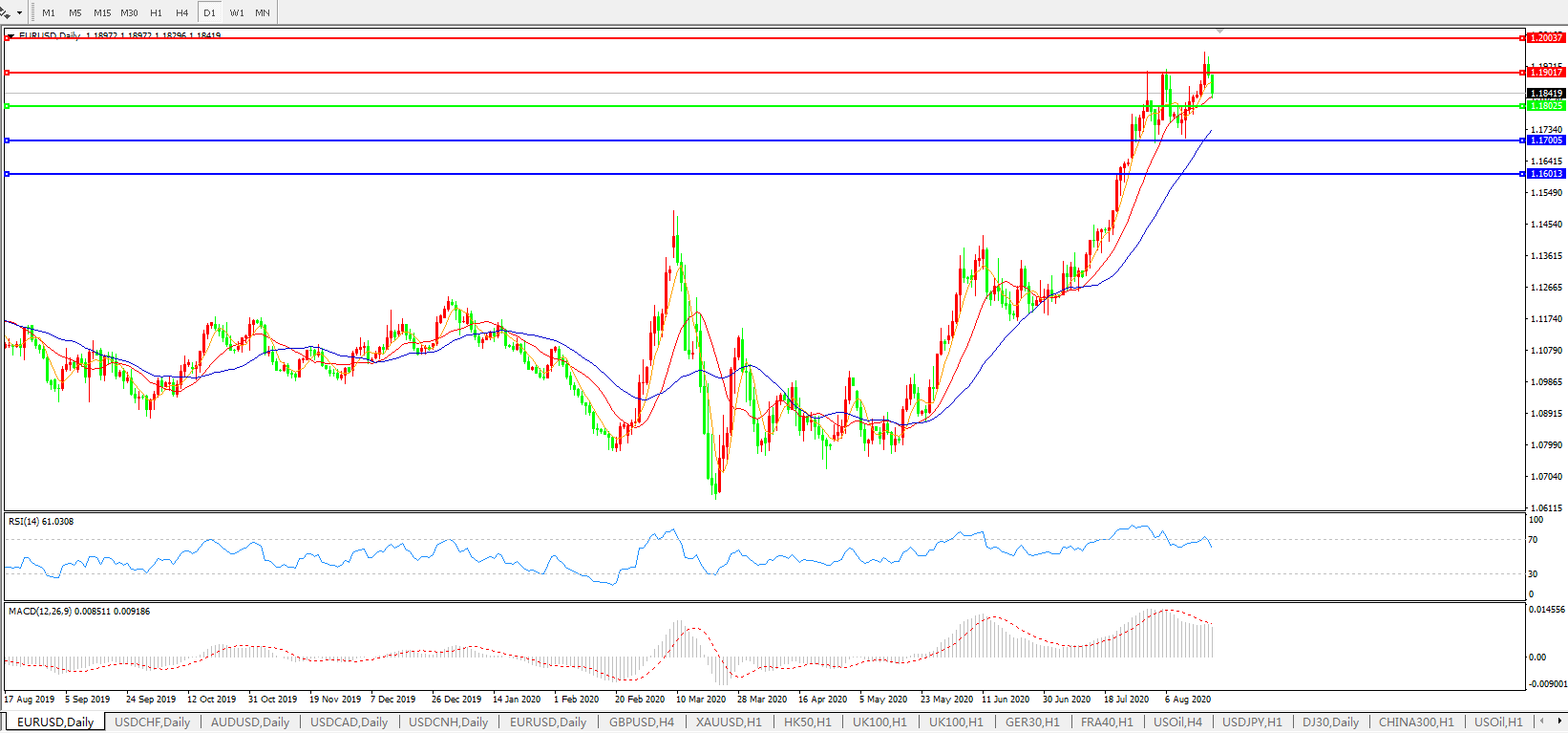 欧元兑美元EURUSD   日线图: