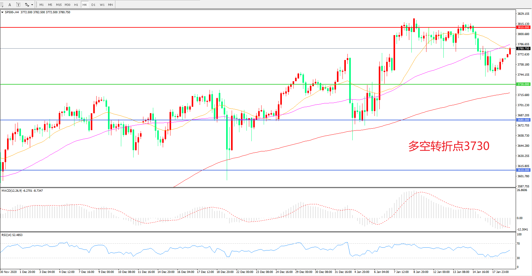 多空转折点:3730.00