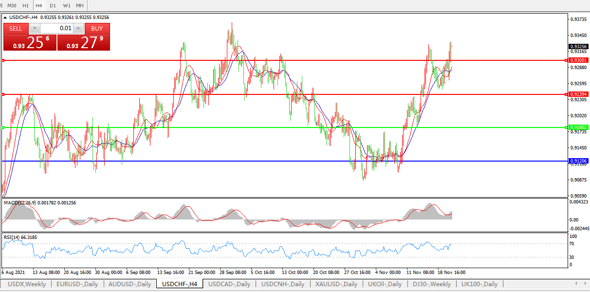 交易策略:0.9180上方看涨,目标0.9240、0.9300