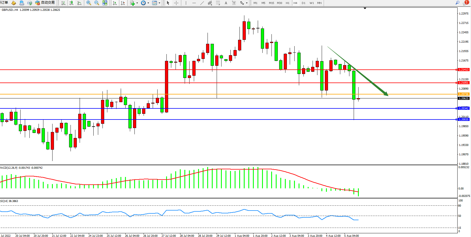 英镑美元GBPUSD ——4小时K线图显示: