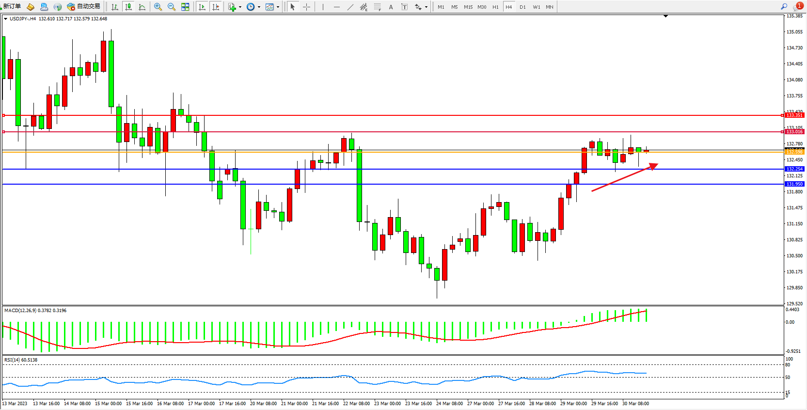 交易策略:132.598上方看涨,目标133.016 133.351